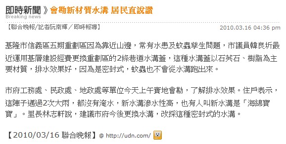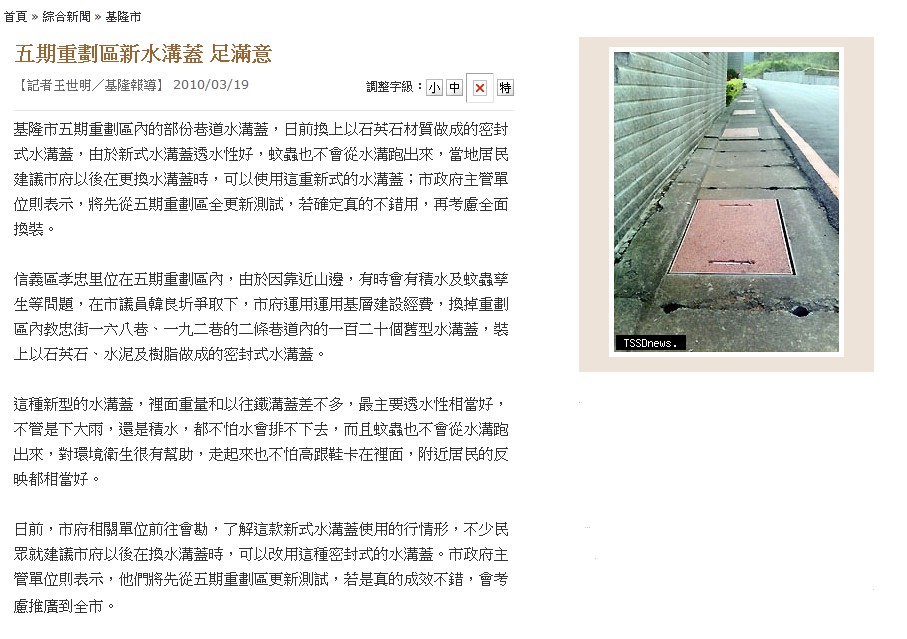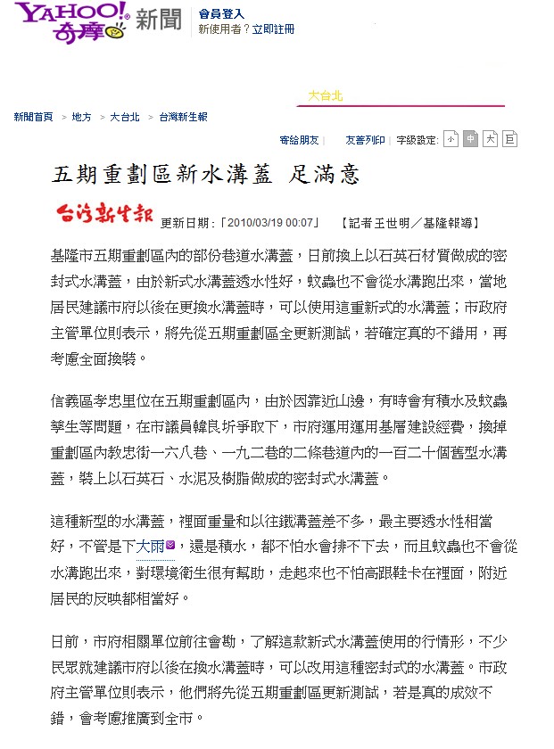 Yahoo!奇摩新聞五期重劃區新水溝蓋 足滿意