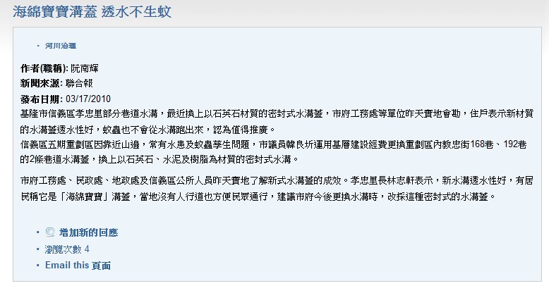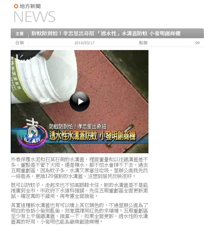 吉隆有限電視 防蚊防到怕!孝忠里出奇招 「透水性」水溝蓋防蚊